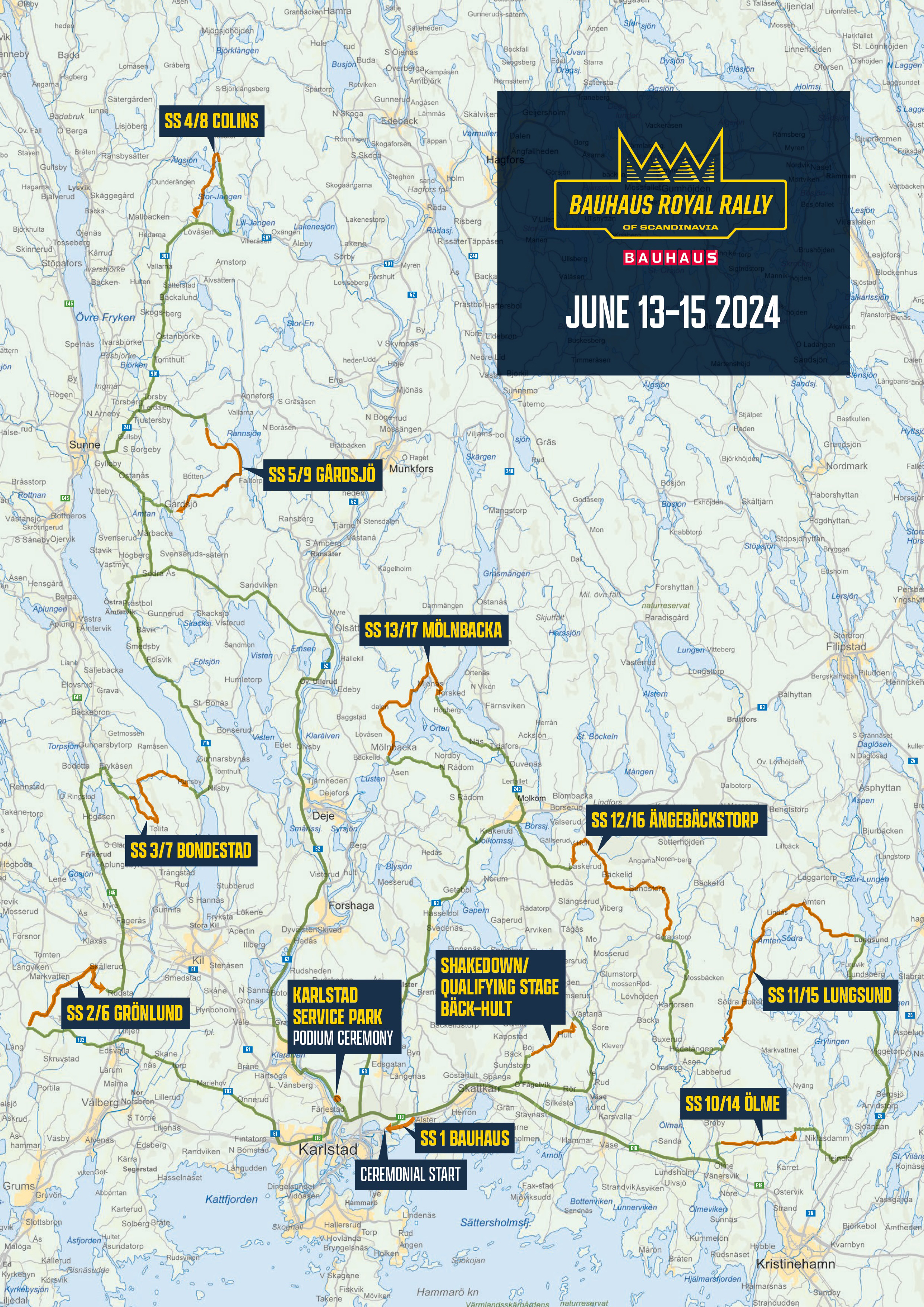 Karta, så körs Bauhaus Royal Rally of Scandinavia 2024.