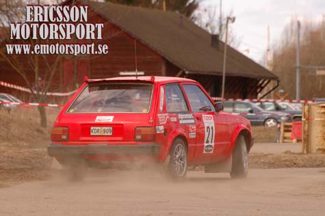 Mariestad MK inledde årets Mega Rallycup med tävlingen Ox specialen. Ca 10km SS/SP. Tävlingen bestod av 1SS och 3SP som vardera körs tre gånger. Fägres Håkan Svensson var snabbast över de 12 sträckorna / proven och tog totalsegern ca 15 sekunder före Claes-Göran Ryrlen. Trea totalt och tvåa i 2wd klassen var Björn Bäckström som hade en riktig RS helg med två asfalt sprintar på lika många dagar. Pär Karlsson slutade fyra totalt med sin Peugeot 306 och följdes av Tommy Nilsson som var snabbaste b-förare. Robin Bergström var tvåa i klassen efter Tommy. Carl-Johan Nordgren var snabbast i c-klassen före Hasse Ericsson. Anders Kärnede i en Original Volvo tog segern före Marcus Rutgerson. Andreas Andersson och Erik Sandstedt var vinnare i b- respektive c-klassen för VOC bilar. Mikael Andersson och Jukka Kovalainen tog hem grupp E klasserna för b och c förare. Philip Ahlstrand vann Ungdomsrallyklassen. Nästa deltävling i Mega Rally Cup avgörs I Falköping den 1 maj, en tävling vi besöker. (Foto: För Björn Bäckström blev det en andraplats i Mariestad efter lördagens seger i Skänninge.)